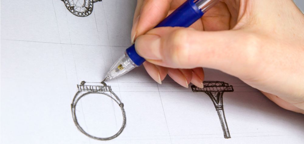 Don´t worry; we´re not looking for fine art! If you don´t think you can get away with borrowing a ring for a day to take it to a jeweller, then pick an appropriate ring and draw around the outline (both inside and out). That way, your jeweller will be able to see both the circumference and the diameter.