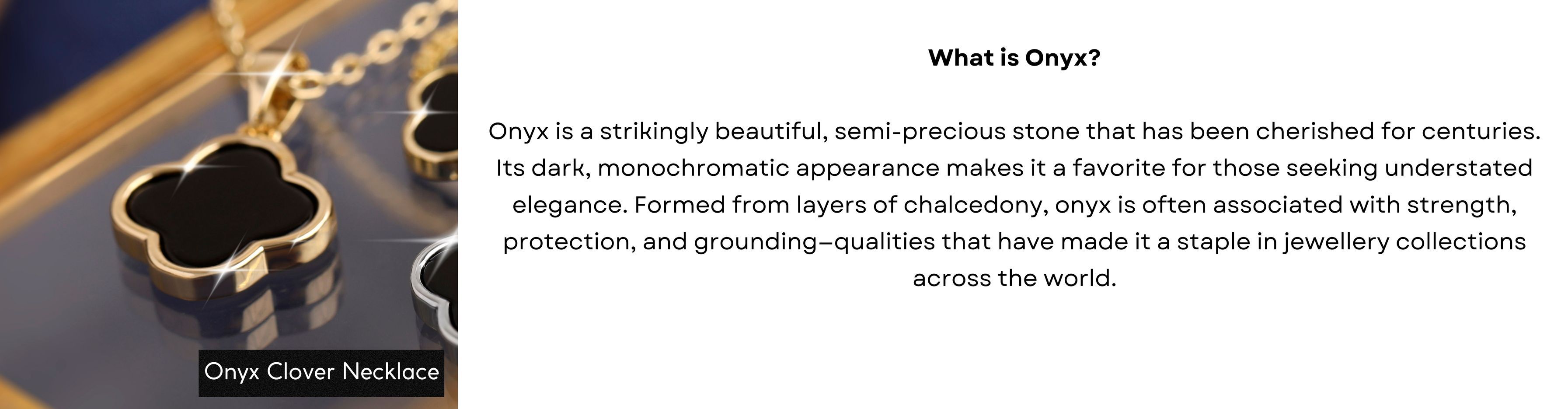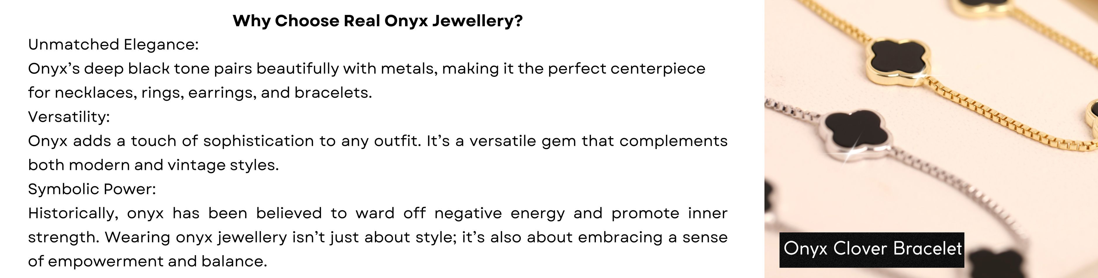 A symbol of luck and charm, the clover design with real onyx stones is both stylish and meaningful. Perfect for those who want their jewellery to tell a story.