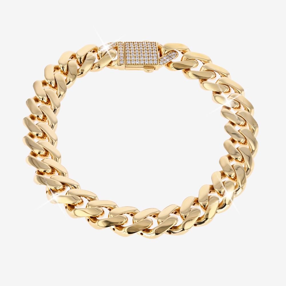 Shop men’s gold bracelets in a variety of styles, including heavyweight designs for a chunky, solid finish, and solid curb bracelets, which are a classic design with a smooth-feeling finish. Many of our designs come with lobster fasteners for easy closing too. Discover bracelets of different thicknesses and with various chain links in different shapes and sizes - there’s something to suit every size in our collection.