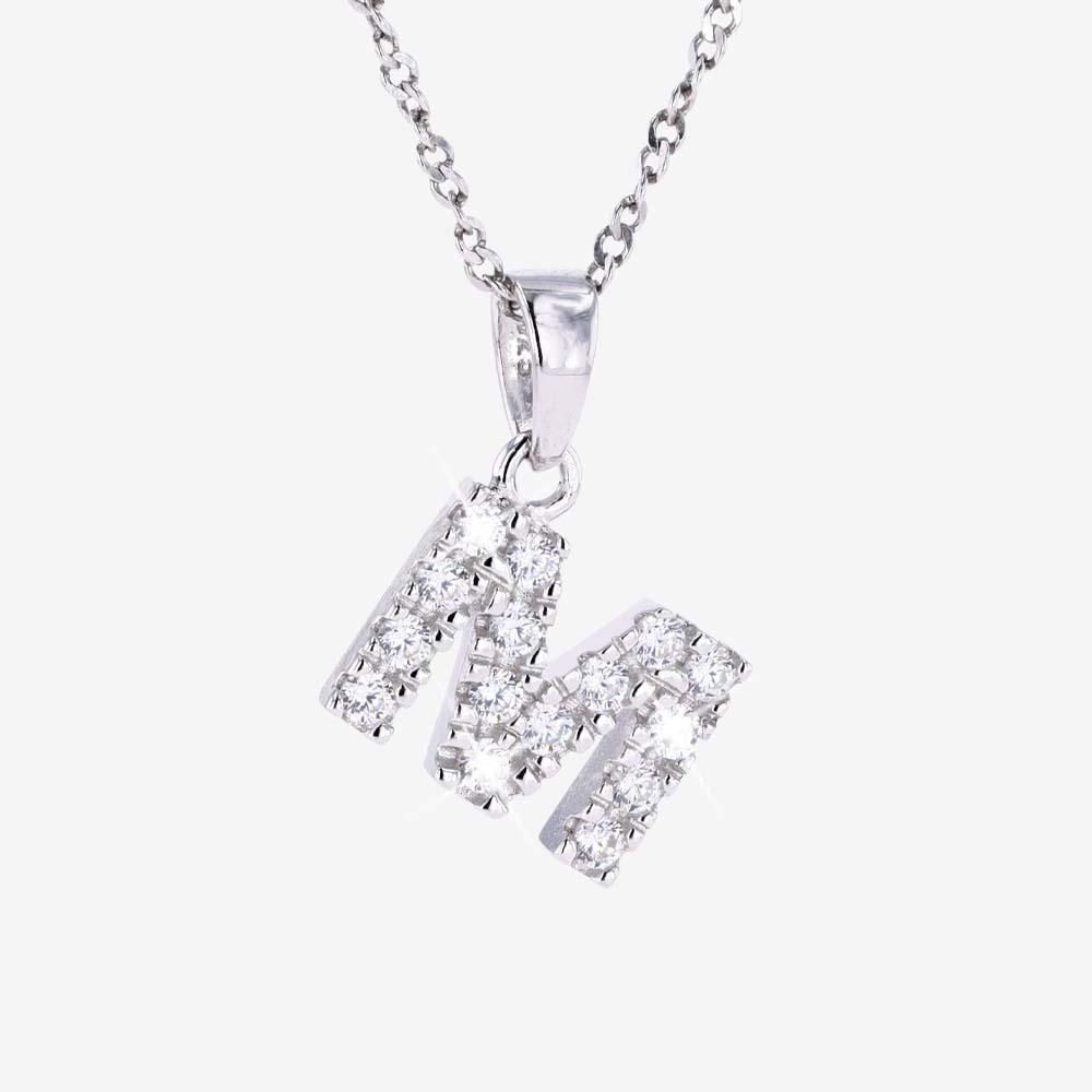 Lets get personal. Luxury Hand Set ‘M’ Initial Necklace is a statement of style and individuality. Perfect worn solo or layered with other necklaces. Great gift idea for someone special.