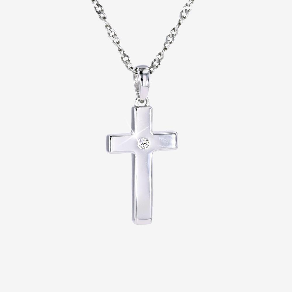 Exclusively Hand Finished, this Mirror Finish Diamond Cross Necklace is gorgeous. Rhodium Finished for added luxury.