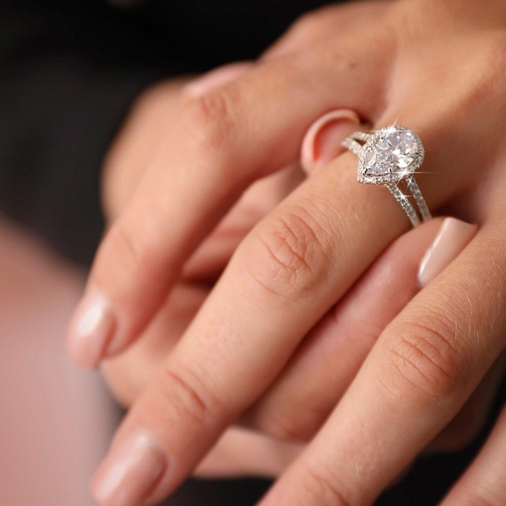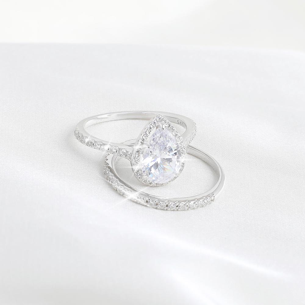 Sitting beautifully together, the DiamonFlash® stone set cluster ring is complemented fabulously with the eternity band, to create a visually stunning effect. Elegant and feminine and with a sparkle sure to get you noticed. Rhodium finish, a member of the Platinum family, for added luxury.